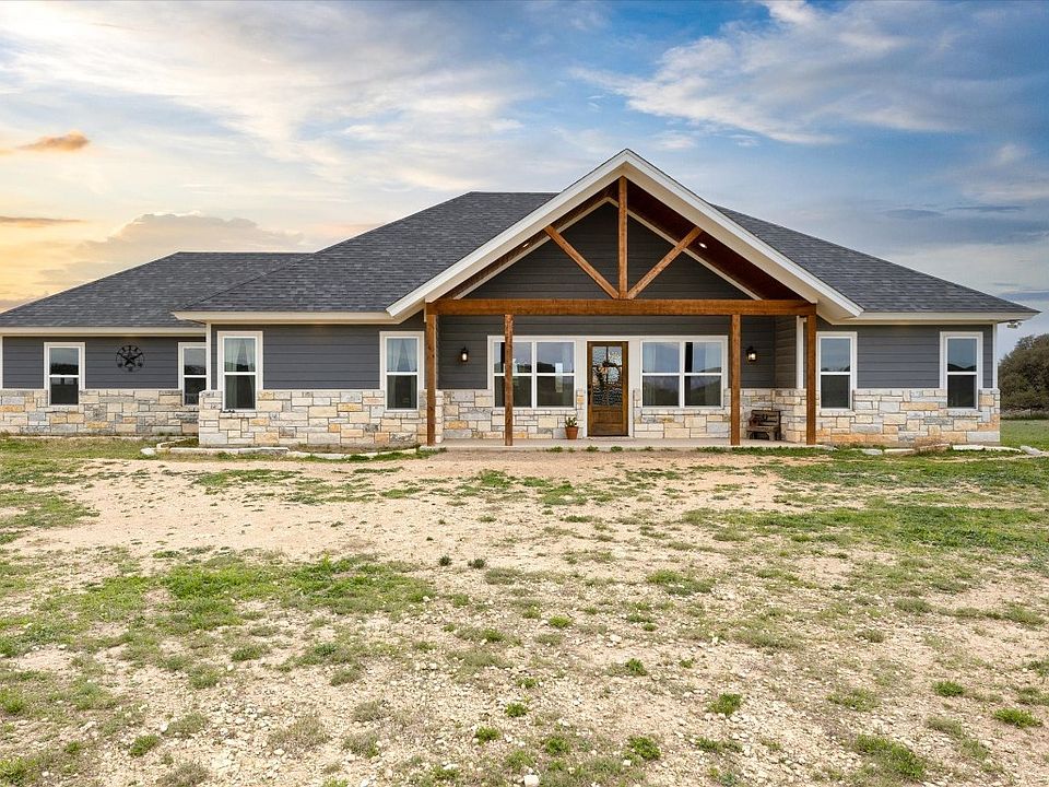 20 acres with a gorgeous farmhouse style home built in 2020. Sitting on 1340' of elevation changes, this home is surrounded by quiet nature, some oak trees, and rolling hills, so the views are steller! The open concept home is a 3 bed 2 bath with a 2 car garage. In the master bedroom, the walk in closet is also a storm room-safe room. The exterior of the home is smart siding and masonry. There is a 50 amp RV hookup as well. Livestock are welcome here, and an AG Exemption is in place! Hunting is also welcome here. Deer, turkey, and other wildlife frequent the property. Located near Proctor Lake and between Stephenville and Comanche. This property also shows to be in BOTH Dublin ISD and Comanche ISD.