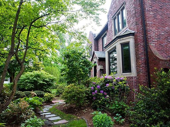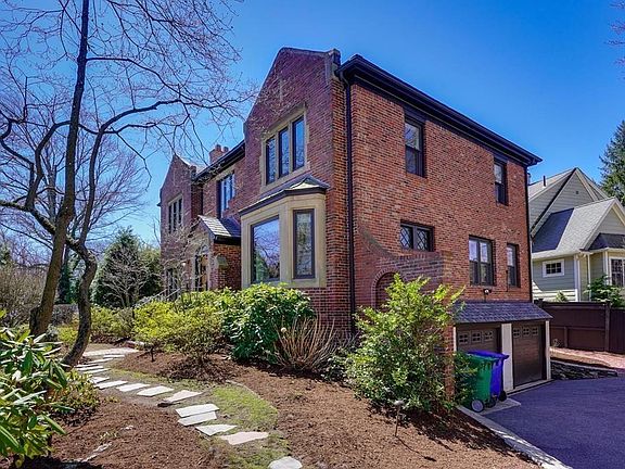 Elegant W Newton Tudor offers a wonderful blend of period details & modern amenities. Expansive entry with dramatic staircase is flanked by living rm & dining rm on either side. The living room has a gas fp, window seat, beamed ceiling, recessed lighting, & opens to both sunroom and sitting room, allowing for integration w/ nature. Large dining rm features inlaid flooring and walkout bay window. The eat-in kitchen has white cabinetry, stone countertops, Wolf cooktop & Miele double wall oven & built-in refrigerator. Completing the 1st level is a bedroom & full bath. The 2nd flr begins with a bright/airy open landing w/ reading nook that features built-in bookcase. Grand bedroom includes walk-in closet, dressing rm & en suite bath. There are 2 add'l bedrooms that share a family bath. Other features include central AC, LL office space, 2-car garage & prof landscaped yard w/ irrigation & brick walkways, stairs & patio. Convenient to parks, shops, eateries, commuter rail and green line.