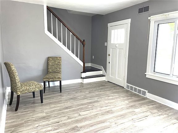 Welcome to this beautifully updated home featuring a spacious living room flooded w/ natural light from generous windows. Recently refreshed with new flooring & neutral paint throughout, the living room opens into a dining area, creating an inviting space for gatherings. The kitchen boasts white cabinets, black appliances, and updated countertops-Downstairs, ample storage awaits alongside a convenient bathroom area & bonus shower. Upstairs, a large master bedroom with a closet offers comfort, while the second bedroom enjoys plenty of natural light. The updated full bathroom features a lighted mirror and a vanity area, with additional storage in a large linen closet. Outside, a detached garage provides plenty of space for vehicles and storage, while the quaint yard area offers a peaceful retreat. Conveniently located with easy access to 376, Pittsburgh International Airport, and downtown, this home is ready for you to move right in and start enjoying its many charms.