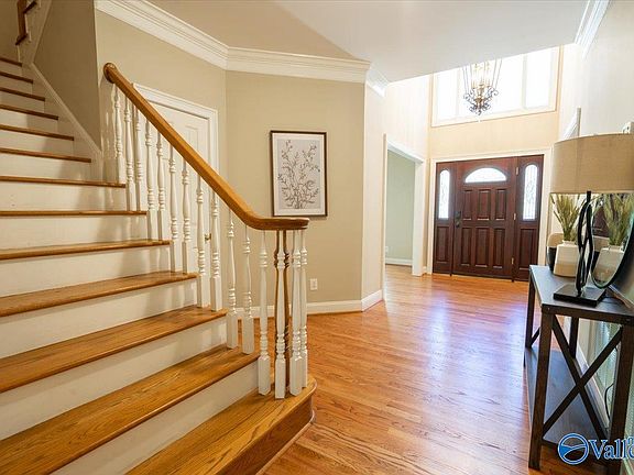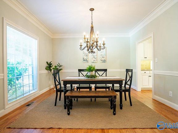 Gorgeous five bedroom home minutes from Huntsville hotspots! Luxuriously secluded overlooking a private wooded view. Hardwoods throughout living areas and bedrooms. The kitchen offers an abundance of granite counter space, large island, and built in appliances. Main suite on first floor offers ample space and french doors access to deck. The spacious main bath boasts updated shower, large walk through closet, and relax in the soaking tub with a peaceful stream view. Upstairs you will find four bedrooms, two full baths, and an over-sized bonus room wired for a projector & sound system. Generous outdoor space for entertaining, two car epoxy floor garage, attic storage, and much more..