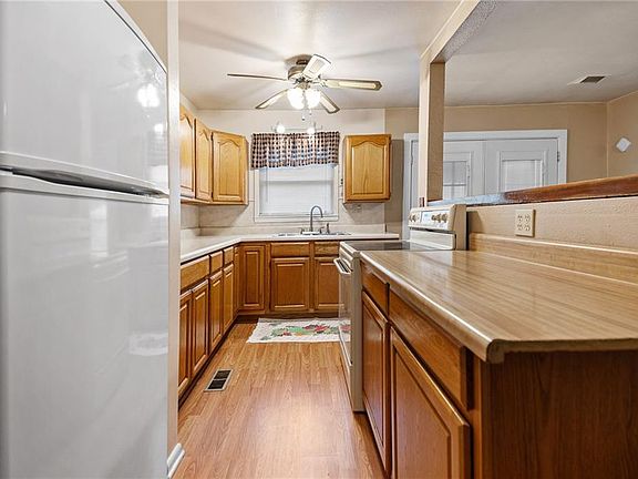 If you have been looking for a cozy, efficient, one level home in Trenton, this one is for you! Walking in this home, you will be greeted with a welcoming kitchen/dining room area. The living room is spacious, with large windows letting in natural light. Down the hall, you will find three bedrooms, as well as a full bathroom with a walk-in tile shower. This home was built in 1950 and has original hardwood floors! Off of the kitchen, there is a handy laundry room, with extra storage, and a folding table. This home once had a garage, but it has been converted into a large storage room. This room could be turned into a fourth bedroom, office, or even back into a garage. Outside the home, you will notice the newer back deck, with a large shade umbrella. Just imagine the cool fall breeze as you relax with friends and family in this outdoor space. The home sits on a quarter-acre lot, and also features a carport, and garden shed. Solid construction, this home sits on a crawlspace, and also has a metal roof! Call your favorite agent and take a look today!