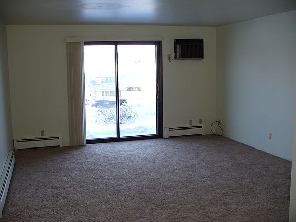 First floor apartment with concrete patio. Zero step entry apartment. Very nice and clean apartment. HEAT, WATER, and HOT WATER included with rent. BRAND NEW paint throughout entire apartment. BRAND NEW carpet in each of the bedrooms. NEWER counter tops in kitchen. Amenities include refrigerator, dishwasher, stove, window treatments, ceiling fan in master bedroom, and wall mounted A/C unit. Kitchen with dining room area attached to it. Coin operated laundry area in basement with large storage area. Off street parking in parking lot. Parking is also located on the side of the street. This unit is located in an excellent location. Within walking distance of Pick N' Save. Within one mile of various restaurants and shopping. Qualified applicants receive half off the first month's rent and potentially only have to pay half a month's rent toward security deposit with a year lease. Credit check and criminal background check will be conducted on all applicants. Cats considered with extra rent and deposit. This apartment is available now.