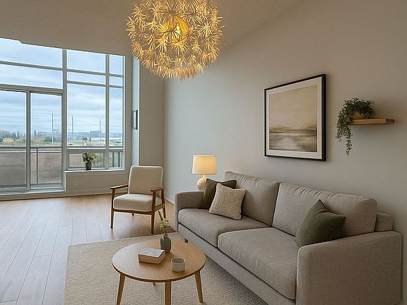 Clear south city viewsFilled with natural lightOpen-concept layoutModern kitchenGranite countertopsWelcoming breakfast barNew engineered hardwood floors