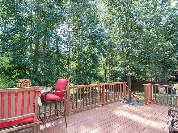 Lovely home in Falls River. New roof 2015, new granite counters in kitchen, new carpet, all neutral freshly painted interior & new water heater. Formal rms, hdwds in foyer, din & kit. Cook friendly kit w/island/bar & breakfast area w/bay window. Light & bright fam rm features a gas log FP & access to the oversized deck. Vaulted MB w/walk in closet & private bath. Lrg bonus or 4th bdrm. Rocking chair front porch. Home backs to private wooded common area & Greenway trails. Can join Falls River Swim Club