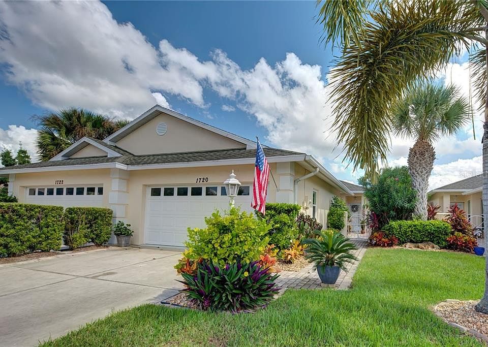 WELCOME HOME! Located right in the middle of Venice, this darling waterfront villa has everything you've been waiting for! Overlooking a sweet little lake, enjoy your morning coffee on the screened lanai watching the birds come and go. Like to fish? This is the perfect place to drop a line while enjoying the beauty of your surroundings. The kitchen is centrally located in the heart of the home, opening onto a dining room, living room and den. The master bedroom is spacious with a large walk-in closet, ensuite bathroom and bright windows overlooking the lake. The guest bedroom, located on the other side of the home, is also bright and sunny and is attached to the 2nd bathroom for your guest's convenience. High ceilings, an interior laundry room and a dedicated pantry complete the picture. A landscaped brick paver terrace runs along the south side of the property and features many flowering plants, a water feature and al fresco dining space. Recent improvements made by the seller include HURRICANE IMPACT WINDOWS THROUGHOUT the home, new STORM DOOR, new KITCHEN GRANITE and APPLIANCES, new FLOORING, and new FANS. Fantastic views overlook the lake and the home offers plenty of outdoor living space as well. This home is immaculate and truly move-in ready! FOUNTAIN VIEW VILLAS is a PET-FRIENDLY small enclave of 48 homes centrally located right off East Venice Avenue with LOW HOA FEES, NO CDD FEES, close to shopping, medical facilities, and some great restaurants. Historic Venice Avenue and area beaches are less than 4 miles away! A HEATED POOL pool right across the street is super convenient, too! Come find your place in the sun today, this beauty won't last long!