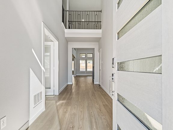 From the moment you walk in, the open-concept layout welcomes you with seamless flow between the kitchen, breakfast nook, and living room creating the perfect space for entertaining or unwinding at home. The kitchen steals the show with gleaming granite countertops, crisp white cabinetry, stainless steel appliances (including a refrigerator!), and an oversized island that invites gatherings. The living room is a true centerpiece, featuring a striking floor-to-ceiling electric fireplace and walls of windows that bathe the space in natural light. Beautiful wood flooring extends throughout the first level, where you'll also find a private home office, a comfortable secondary bedroom, and the luxurious primary suite. Your primary retreat boasts dual sinks, a spacious walk-in shower, and a generously sized closet with custom built-ins. The nearby utility room comes fully equipped with a washer and dryer and connects to a handy mudroom for added convenience. Upstairs, there's plenty of room to spread out with additional bedrooms and a versatile game or media space. Outside, enjoy a large fenced backyard with a covered patio perfect for cookouts or cozy evenings under the stars. Don't miss the newly installed epoxy garage floors, adding both durability and style to your two-car garage. This home combines modern design, everyday livability, and smart home features all that's missing is you!