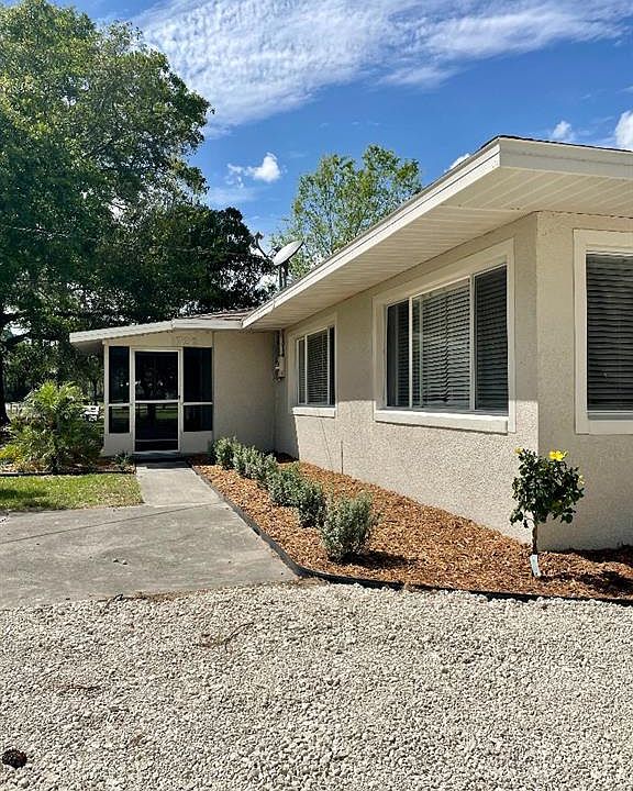 Beautifully updated 3 bed 2 Bath with Room to roam on this gorgeous 1 acre property with a fenced, in ground pool! Enjoy every inch of this recently redecorated home! Spacious kitchen has new cabinets, brand new stainless steel Appliances and stunning quartz countertops with a herringbone backsplash. Luxury vinyl plank floors throughout the entire home! Two Spacious guest bedrooms and fully renovated guest bathroom. The master is in its own wing of the home with a massive walk in closet with an Island! Master bathroom boasts a tiled shower and gorgeous double vanity! After a fun filled day in the pool,enjoy the evenings on one of your TWO screened patios! Additional features are keyless entry and nest doorbell, new landscape, new hot water heater garage and carport with new gravel. Located in Lovely, desirable neighborhood close to amenities.