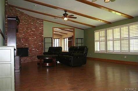 This upgraded custom home features 5 bedrooms and 3 bathrooms, two large master suites with walk-in closets and one featuring a private entry on the side of the home. There are new wood floors throughout, and a large living room with exposed wood beams, vaulted ceilings and a beautiful brick fireplace. The kitchen also features exposed wood beams, new tile floors and vaulted ceilings as well as a butcher block island, gas built in range, double ovens and breakfast bar. The indoor laundry room leads into a bonus room that can be used as a pantry, office or storage. There are custom wood blinds, gorgeous custom cabinets, doors and hardware, and tons of storage space throughout the home. All of the large bedrooms have ceiling fans and over-sized closets. The private landscaped back yard has a pool and patio.