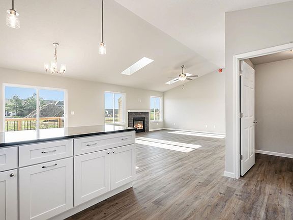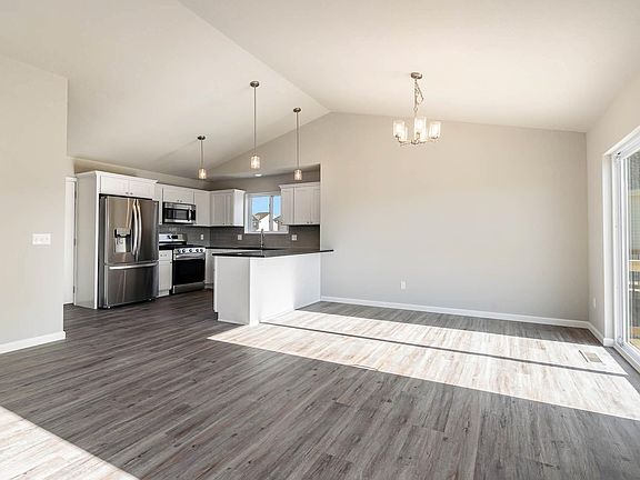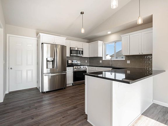 New condo in town close to shopping & schools. 3 bedrooms, 3 full baths with private master bath. Master bedroom has walk in closet. Finished basement with family room, bedroom, and full bath. Cathedral ceiling with skylights in living area. Gas fireplace. Sliding glass door to deck. First floor laundry. Upgraded cabinets with soft close doors & drawers, granite countertops. Stainless steel refrigerator, stove, dishwasher, built in microwave. Garbage disposal. Washer & dryer. 2 car garage with opener. Lawn irrigation. Large covered front porch. Vinyl siding with brick veneer. Gas forced air furnace with central a/c.