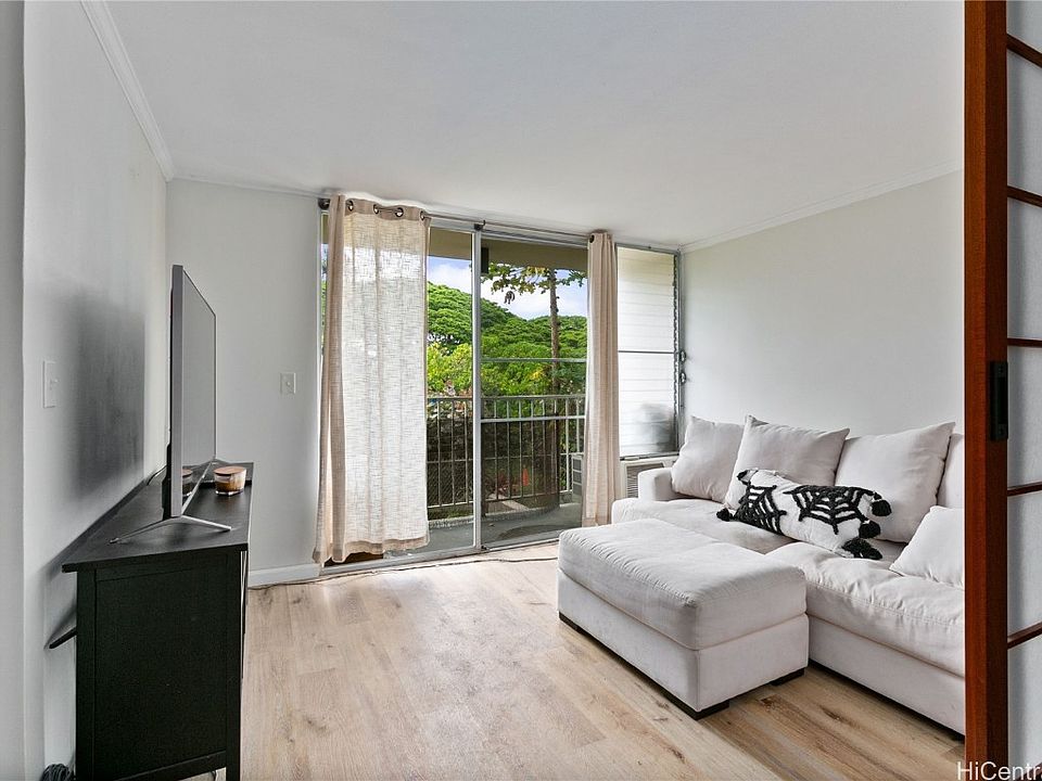 New Paint!! Introducing a captivating opportunity to reside in Nuuanu Park Place. This pet friendly rarely available gem presents an impeccably renovated two-bedroom, one-bathroom unit that seamlessly combines luxury and comfort. Immerse yourself in the finest details, from the top-of-the-line appliances to the new vinyl plank flooring that graces the interior. Step onto your very own private lanai, where tranquility meets beauty. Encompassing the lush serenity of Liliuokalani botanical gardens and the soothing flow of the Nuuanu stream. The building boasts a swimming pool that invites relaxation and a grilling area perfect for entertaining some friends. this address offers the luxury of seamless travel, with easy access to the freeway, Fort Shafter, downtown Honolulu, and the vibrant Kakaako district. Whether you seek a tranquil retreat or a dynamic urban experience, this unit effortlessly delivers both. VA Assumable available: 3.75% 451K payoff