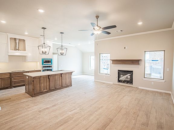 Under Construction!Convenient floorplan for any family size or type! This Hummingbird floor plan, located in a cul de sac, includes 2,025 Sq Ft of total living space, which includes 1,800 Sq Ft of indoor living space and 225 Sq Ft of outdoor living space. There is also a 565 Sq Ft, three car garage with storm shelter installed. Home has 4 bedrooms, 2 bathrooms. The living area has a gas fireplace with stack stone surround, is open floorplan to the kitchen and secluded from bedrooms with a barndoor. Kitchen has 3 CM quartz countertops, stainless steel appliances, decorative tile back splash, corner walk in pantry, and island with center farm sink and dishwasher. Master bedroom has a boxed detail ceiling with crown molding and has an en suite bathroom that includes a dual sink vanity, spacious walk in closet with seasonal racks, roomy walk in shower and whirlpool tub. The covered back patio offers a wood burning fire place, tv and cable hookups, and a gas line for your grill. Other amenities include Tabertech Smart Home Technology, air purification, Rinnai tankless hot water, solar boards, and R44 insulation.