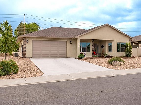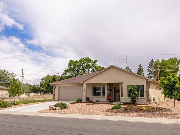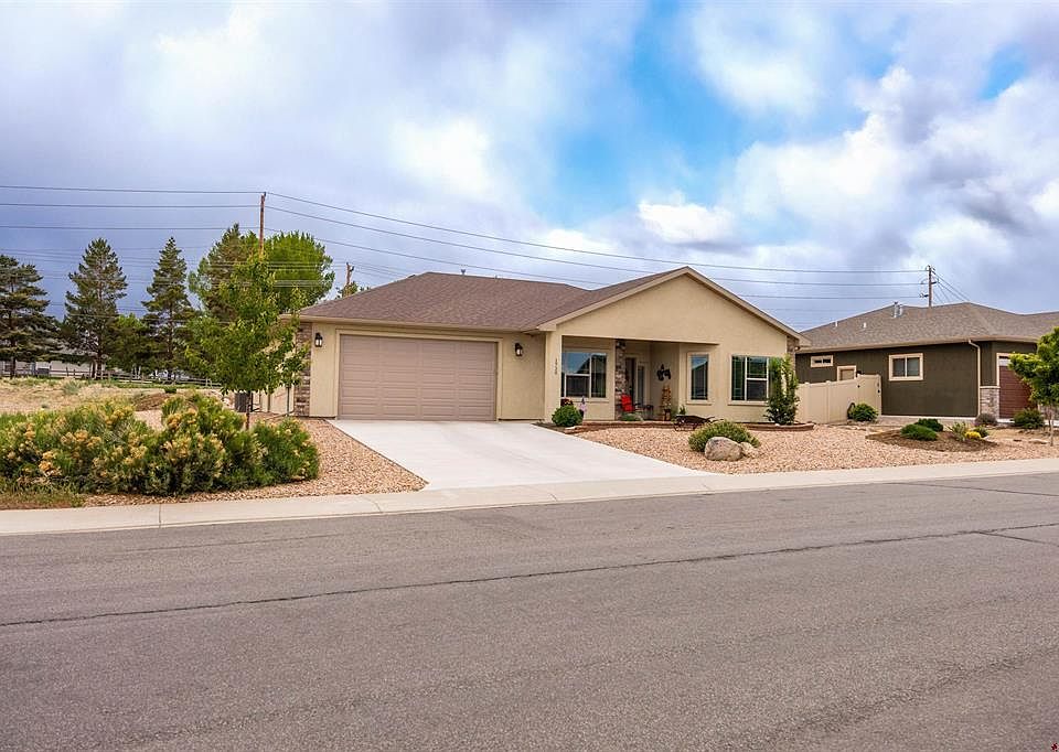 Affordable comfort in the Estates at Stone Ridge! This well-maintained 1,653 sq ft home offers an open-concept layout with luxury plank flooring, a cozy gas fireplace, and 9' ceilings. The kitchen features custom hickory cabinets, a deep sink, large island, pantry, and stylish finishes. The primary suite includes a walk-in closet, dual sinks, glassed walk-in shower, and private lavatory. Enjoy a bright dining area with custom shelving and space for a large table. Additional features include natural gas heating and A/C, quick-response hot water, low-E windows, and partial wheelchair accessibility with wide doorways and pocket doors. Storage is abundant with deep closets and a 505+ sq ft oversized 2-car garage. Outside, relax under a pergola on the patio, surrounded by water-wise Xeriscaping with drip irrigation—ideal for Colorado’s dry climate. Set on a spacious 0.31-acre lot, this home is within walking distance of the Montrose Community Recreation Center and more. Quality-built by Byler Construction, it’s move-in ready and waiting for you!