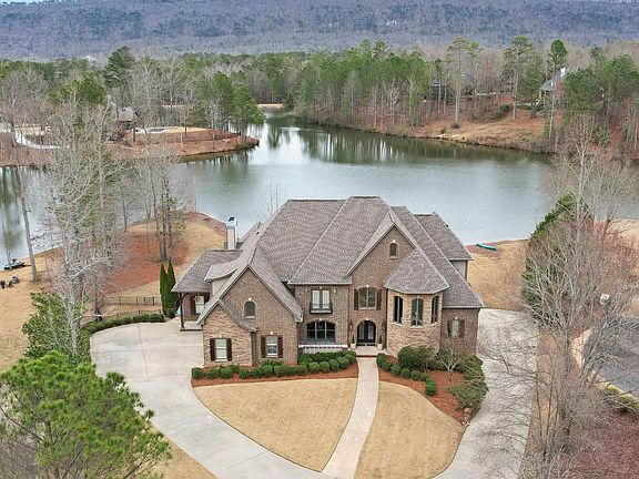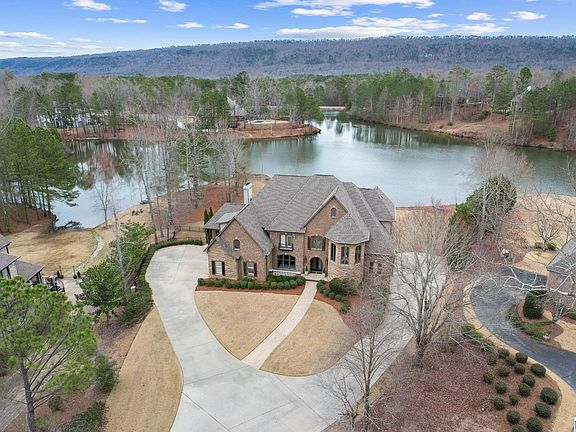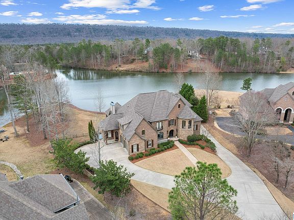 Spectacular, one-of-a-kind, WATERFRONT home with 358 feet of shoreline, panoramic lake and mountain views! Stocked lake with great fishing! On almost an acre lot, this home features vaulted ceilings throughout with lots of custom details. Amazing main-level cedar screened porch overlooking lake. Crown molding in EVERY room, hardwood flooring in all the living areas, AND all the bedrooms. Castle-door entry to expansive lake views from all living areas and most bedrooms. Main floor features master bed and bath, great room, formal dining with coffered ceiling, kitchen, keeping room main-level office area with desk and large laundry room. Halfway up the stairs is a beautiful, paneled office with a 12 foot ceiling. Three extra large bedrooms, with their own private baths, and a huge playroom/ 5th bedroom upstairs. Over 3,200 sf in the basement. Flat backyard to lake. 4 garage spaces 2-car ML and 2-car LL. Community swim and tennis included in your HOA dues. Award winning Hoover schools!
