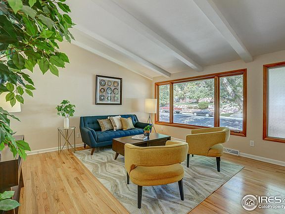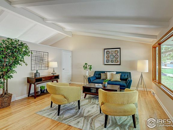 Simply beautiful mid century modern remodel. Open the front door to airy vaulted ceilings, large picture window and shiny real oak hardwood floors. Upgrades included casement windows in Living room, double pane vinyl windows and newer patio sliders thru out. 200 amp electrical service, updated lighting and new kitchen and baths. Kitchen has maple soft close cabinetry with cherry stain, granite counter tops and glass tile back splash. Large trex style deck right off kitchen. Stainless steel appliances, 5 burner range with convention oven, microwave and Bosch dishwasher . Doors and trim have all been updated. 3 bdrms and 2 baths on main floor. Primary bedroom has private 3/4 bath with custom tile work. Fully finished walkout basement has huge family room, 12 x8 laundry room with deep sink and folding table, 4 th bdrm and 3/4 bath with heated floor. Wonderful private back yard with peekaboo view of Flatirons. Quiet neighborhood close to foothills open space trails. Great southern exposure off the back of the house. 220 volt outlet in garage for EV. New exterior gutters too. This home is turn key don't miss it.