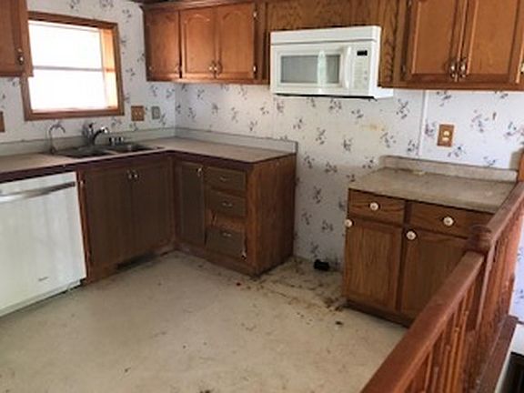 One story manufactured property with unfinished concrete basement on 60x140 lot has 2 bedrooms, 24x30 detached garage, and an 8x16 enclosed rear porch.