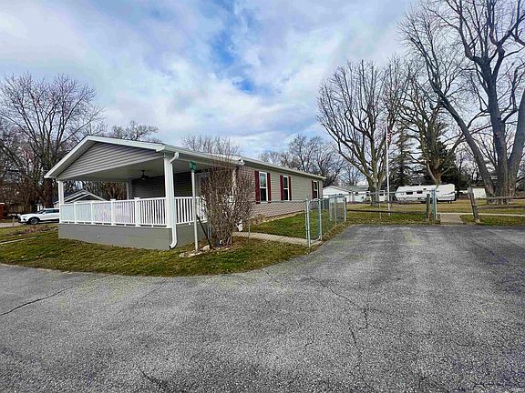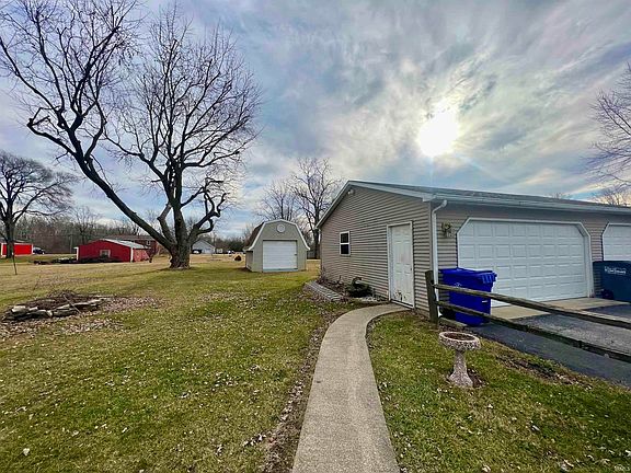 1 year new manufactured home with detached 3 car garage and additional storage shed. This lovely home offers neutral paint and vinyl flooring with soft brown shaker cabinetry in the kitchen. On almost half an acre, there is a small chain link fenced area as well as room for a garden out back.