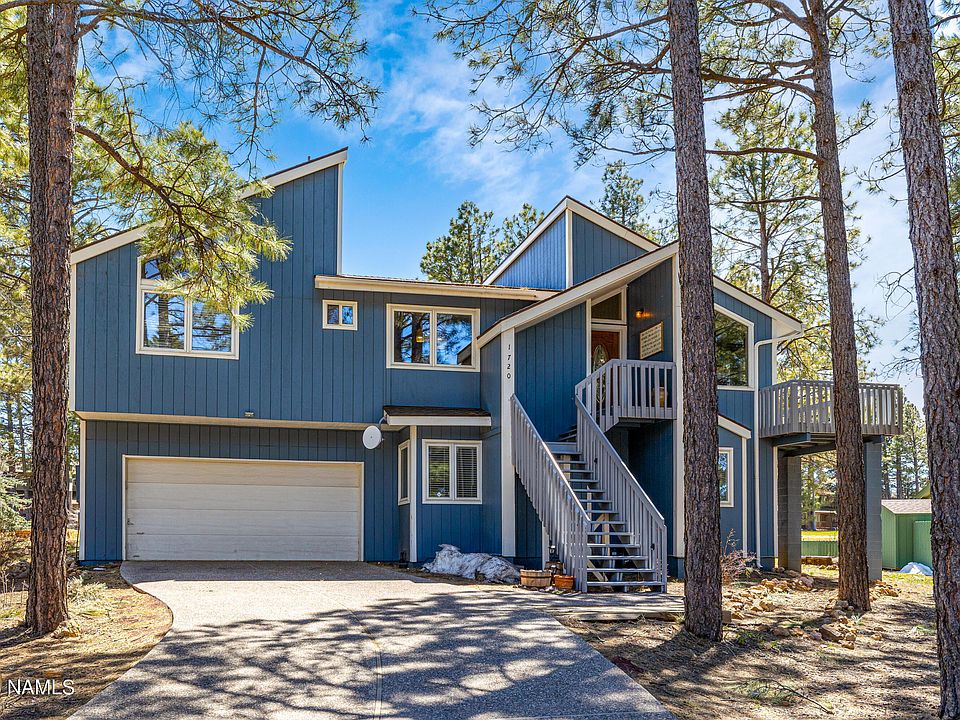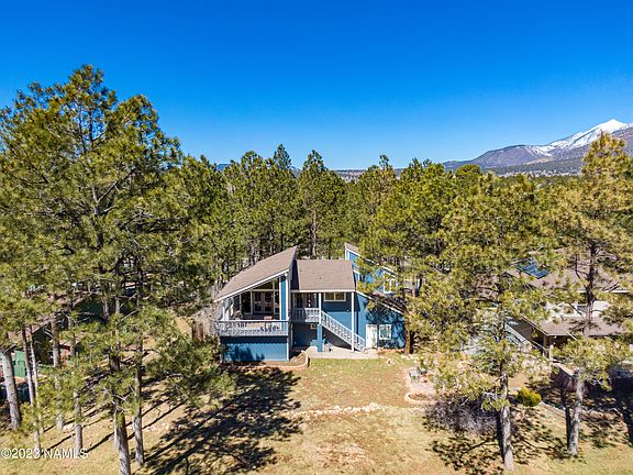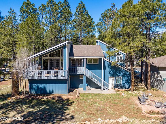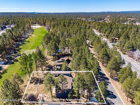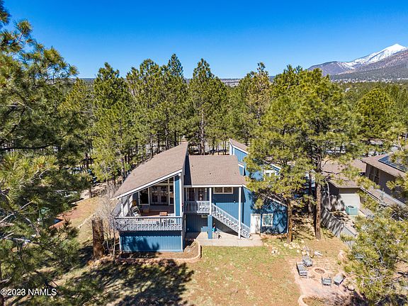 Located in the heart of the Country Club, you are going to love living on the #1 fairway of Aspen Valley Golf Course. Sit on your covered deck and prepare to enjoy the beautiful Flagstaff summers and stunning views, also fire pit and flagstone patio perfect for entertaining. The living room is light and bright with amazing views, soaring ceilings and wood floors. The kitchen has granite counters, tiled backsplash, french doors and stainless appliances. There is a bedroom with loft and full bath located on the main level. The Primary suite is spacious and complete with en-suite with dual sinks and tile surround tub and shower. There are 2 additional bedrooms and full bath.