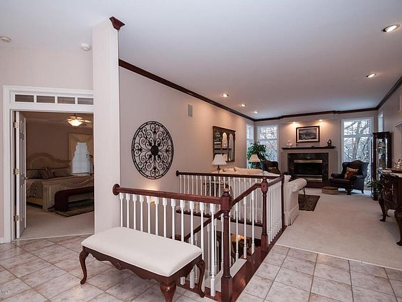 Desirable walk-out rambler on wooded cul-de-sac lot. Fantastic master bedroom and bath featuring heated floors, large walk-in shower, soaking tub, double sink, huge walk-in closet. Gourmet kitchen with stainless steel appliances, cherry cabinets and granite counters. 13' ceiling in dining. Cozy main floor and lower level family room with gas fireplaces in living and family room, paneled doors. Great storage. (See Supplement