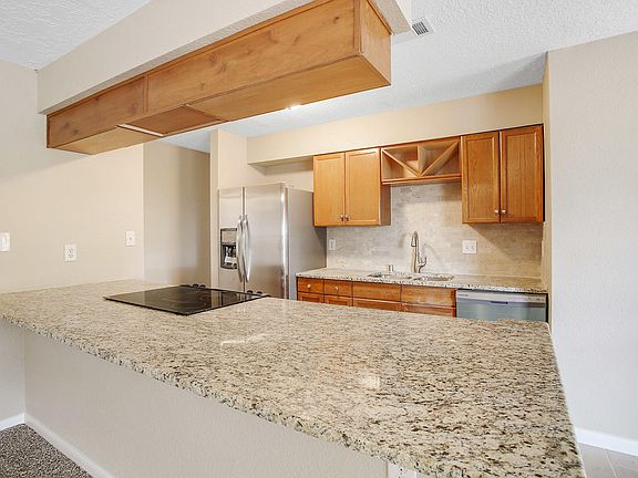 This corner lot house features stainless steel appliances, new carpet, tile, granite counter tops and a covered patio.