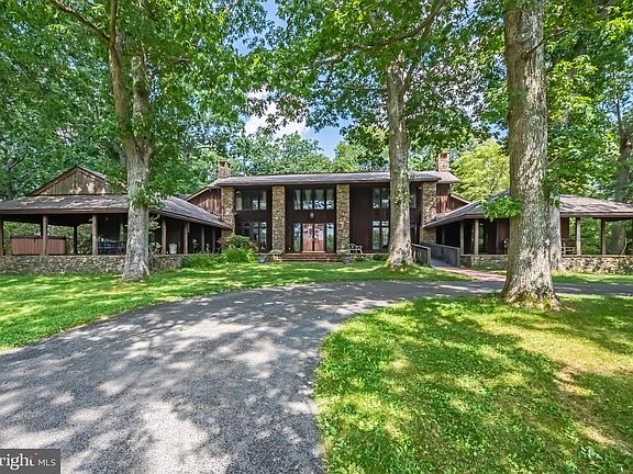 'Four Winds' is a Frank Lloyd Wright inspired masterpiece at Deep Creek Lake. Restored & renovated as recently as 2021, this 4/5BR home boasts 8000sf on nearly 5 acres of land. A small part of the home was converted to accommodate a successful medical practice - 2 patient rooms, bathroom & private office - which adds amazing potential to creatively 'work from home' in many professional fields and the elegant living areas easily double as a posh waiting room. There is an abundance of stone featured inside and outside of the property, essentially a modern castle. The exterior includes a brick courtyard , multiple outdoor living areas & covered porches, a master suite balcony with seasonal lake views, 5 total garage stalls (3 attached), a wraparound driveway with parking for 12+ vehicles, seasonal lake views from the rooftop balcony, covered gazebo & outdoor fire-pit. Inside, a modern a gourmet kitchen, Brazilian cherry floors, custom tile, elaborate dining room, 3 wood burning fireplaces + wood stove, multiple living rooms, 3 master suites, ornate carved doors, library and several over-sized storage rooms. Primary suite offers his + her bathrooms, sauna, wood burning fireplace and 'secret' spiral staircase descending to a sunken living room & basement level stone wine room. Other items of note: newer roof & updated mechanicals, whole house generator, multiple heat options, multiple instant hot water systems, Central AC, and much more. Must see to appreciate! Tax record shows year built of 1890, but owner indicates 800sf of the original farmhouse foundation was used as a foundation and the home is a totally rebuild circa 1976.