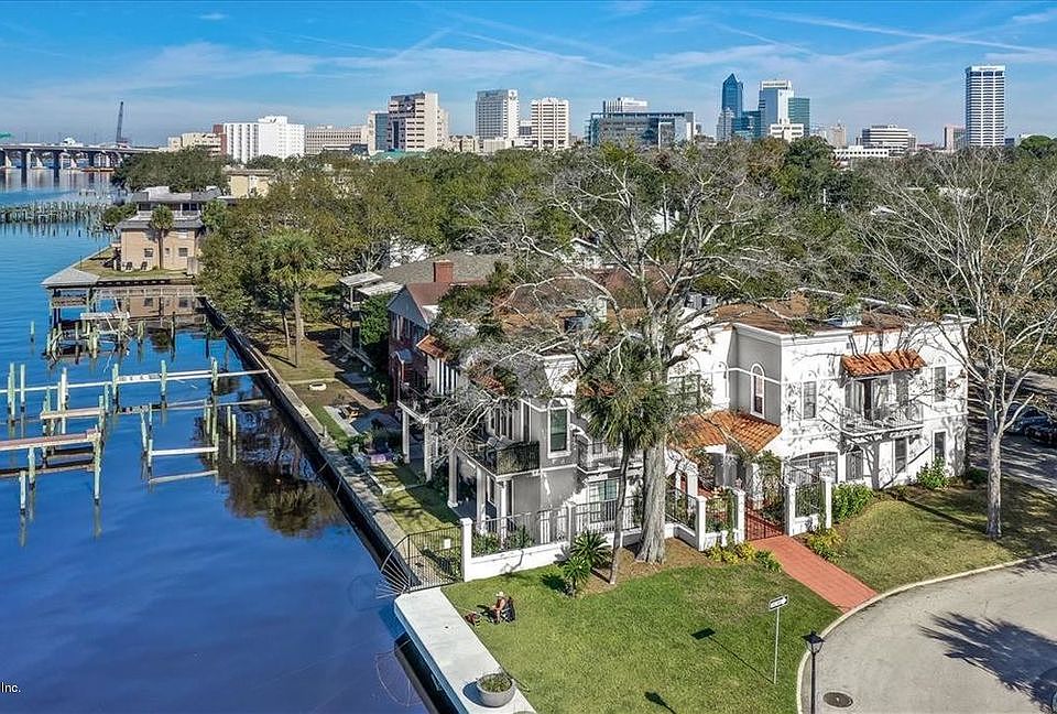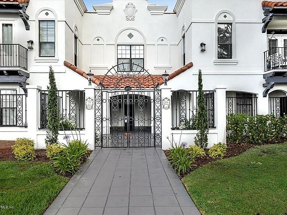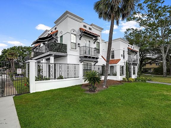 Don't miss this Mediterranean style townhome in historic San Marco on memorable Riverfront Park. 2 Blocks from San Marco Square dining/shopping. Sip your coffee or cocktail from the tranquil balcony while enjoying the panoramic views of the St. Johns River. Spacious floor plan with 2 recently remodeled bedrooms & bath downstairs. Upstairs boasts a perfect size great room, modern style kitchen, & master suite. Extras incl: a private elevator, hardwood floors, upscale lighting,Ship Lap walls, Plantation shutters, & blinds. Kitchen features granite counters, glass tile backsplash, & 42'' cabinets. Dining area with its own balcony is a plus. Soaring ceiling & beautiful windows create delightful natural light. 2 parking spaces-one in shared garage & the other in the building's parking.