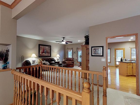 If you like sitting on a wrap around deck and looking at nature at its best, then this custom built home is perfect for enjoying the outdoors. Featuring a spacious floor plan with 3 bedrooms, 3 1/2 baths with a double sided fireplace between the kitchen and large living room with a large master suite on one side of the home and then 2 large bedrooms separated on the other side of the Living Room. While your preparing food in the kitchen you have a golf course view with granite counter tops, custom built cabinets and beautiful wood floors. The 3 car garage is perfect for the families extra toys and a full finished basement for entertaining and the possibility for 2 more bedrooms if needed. This home did not get any underflow in the spring of 2019.