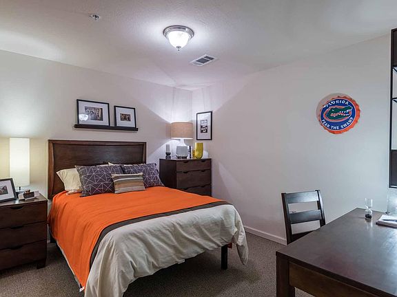 1 bedroom, 1 bathroom apartment in a 2/2 at Varsity House Apartment Complex in Gainesville, Florida, which is very close to both the University of Florida and Santa Fe College. Apartment amenities are private bedrooms with locks, private bathrooms, washer/dryer in unit, dishwasher, modern appliances, refrigerator with icemaker, walk in closets, modern furniture for each room included, water/trash service, $20/month electricity allowance, high speed internet, and cable package included. Other on site amenities include computer lab, game room, 24 hour gym, indoor tanning, clubhouse, on site security officer, juice bar, outdoor grills, pavilion, sand volleyball courts, resort style pool, covered parking garage, controlled access gate, and basketball court. Maintenance requests are quick and effective, walls are not thin, covered garage parking, utilities (other than electricity), and insurance is included in the lease, and the location is very safe. The images posted are stock images, as I am in the process of moving out. The apartment and complex look the same as the images. Wood floors in the kitchen, carpet in the bedrooms, and tile in the bathrooms. Move out is 7/31/2021. Monthly payments can be made online or in person (January is already paid for, so payments would begin on February 1). I will take care of the any lease transfer fees if you can move in before February!