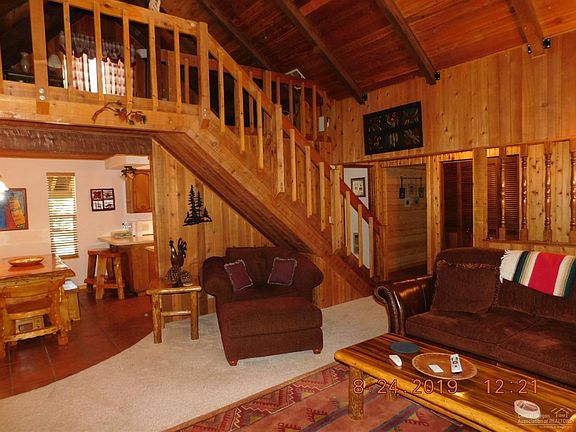 Beautiful, custom lodge-style home with a vaulted great room featuring large beams and tongue-and-groove ceilings and a solid wall of windows. Cedar & pine walls, solid wood doors, carpet & tile thru-out the home. Lovely large loft could easily be a 3rd bedroom. Oversized, attached garage/shop. This home is situated on 1.35 acres in a quiet cul-de-sac with a brand new septic and newer well. Wonderful, unobstructed views of the forest. Darling children's playhouse, additional shop/guest building and metal double carport structure.