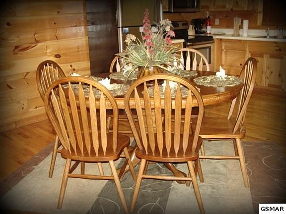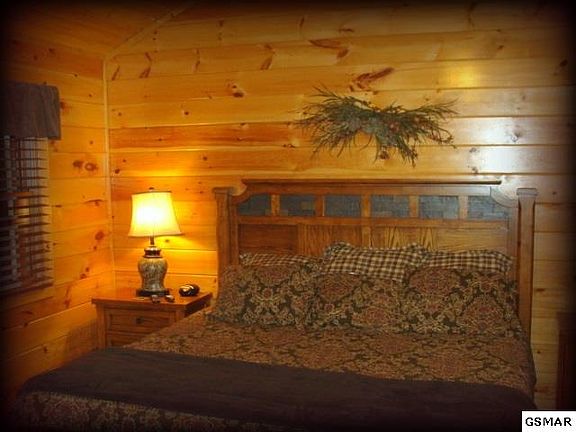 2 BD/2 BA, one level, cozy log cabin nestled in a cul-de-sac of a well-developed Gatlinburg subdivision! Step inside this cabin to a spacious & open kitchen, dining and great room combination w/vaulted ceilings, beautiful furnishings and decor. Split bedroom design--each a master suite with whirlpool tub and full bathroom. Great room and both bedrooms have access to the large private patio/deck that features a large hot tub, rocking chairs, porch swing--all there for you to enjoy while taking in the mountain view in the distance. This is a great Gatlinburg location--many attractions nearby include the National Park, Gatlinburg Arts & Crafts Community, Rocky Top Sports World, the Gatlinburg Community Center and much, much more! Very well-built--professionally decorated and wonderful investment opportunity--doing great on the vacation rental program.