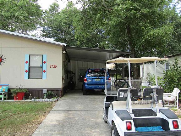 Very nice double wide in Spanish Cove. New metal roof 2018, new HVAC 2017. Hardy boeard siding. 3bedroom/2baths. Really nice screened porch, workshop shed. Raised garden beds. Carport on one of two driveways.Has RV hookups. Spanish Cove amenities include year round pool, 2 clubhouses, fishing pier, tennis courts & 24 hr security. Furniture Optional
