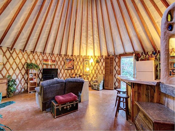 This 30' yurt is ready for the individual(s) looking for a great home with an awesome view in the Alarka area. This is a 1BR/1BA 30' yurt with an additional sleeping loft. Built by the owners, their creativity is obvious in handcrafted art work and unique décor. The colors are bright and cheerful. Beautiful carved wooden bar in kitchen and check out the bathroom. The yurt is constructed of vinyl fabric with wood frame doors and windows. Lovingly called the Sunny Bohemian by the owner/builders, it instantly creates a feeling of getting away from it all. This home is in a gated community, very private, no road noise. There is a mini-split for heating and cooling.