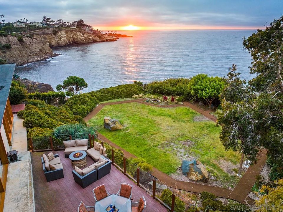 Unparalleled ocean views abound at this truly spectacular Oceanfront residence. Perfectly sited on approximately 0.91 Acres above the Blue Pacific, with views from the La Jolla Cove to the Cliffs of Blacks Beach. Expansive level yard and lush tropical foliage invite you to enjoy the outdoor coastal lifestyle. Single-level Wood and Glass home blends seamlessly into the vista. Floor to ceiling walls of glass capture the amazing views. Curvilinear kitchen island is the focal point of the open floorplan, with the spacious kitchen facing the living and dining rooms, all highlighted by soaring ceilings, glass walls and natural design features. A once in a lifetime Trophy Property.