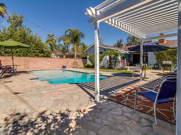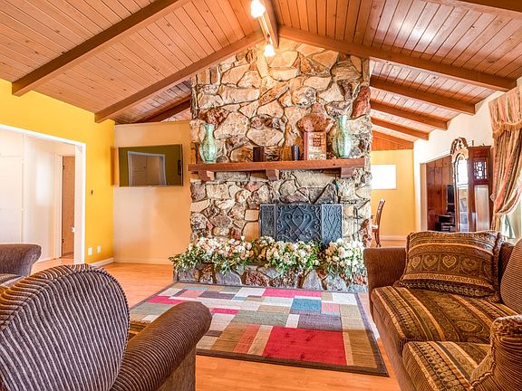 Every REX home comes with a 30-day buyback guarantee. Terms and conditions apply. Schedule your appointment with REX for a same day showing. Absolutely amazing curb appeal, this 4 bedroom, 2 bath home with 1930 square feet is located in San Fernando! A luxurious cabin-like feel with all the modern touches, the living room offers vaulted wood beamed ceilings and a floor-to-ceiling stone fireplace for cozy nights and cool mornings. A step-down den features a pot-bellied stove and wood accents, and the kitchen has Formica counters, hardwood cabinets, dual electric ovens, gas stovetop, separate rotisserie oven and ample storage. The master bedroom features plush carpeting, a walk-in closet, access to the backyard deck and an en suite with granite counters, tile flooring and tiled tub/shower. Newly paved backyard with Arizona flagstone; pool; firepit; pergola and deck is perfect for entertaining year-round! Central AC. So much to offer in this special and custom home. Schedule a showing with REX today and make wonderful memories here for years to come!