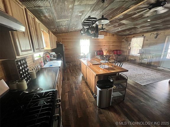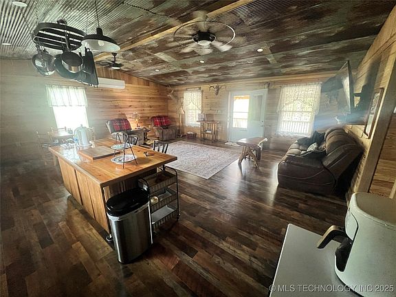 Rogers County, Oklahoma is home to this 5.5 +/- acre hobby farm with multiple improvements. The home was custom built in 2021 by the current owners, and is situated on blacktop frontage. The interior of the home has a fantastic rustic feel from the knotty pine walls to the luxury vinyl floors to the corrugated tin ceilings and barn doors. The open concept design of this 1,152 square foot home contains 2 bedrooms and 1 bath. Located on the north side of the home is where you will find the 8’ x 48’ covered front porch. On the back of the house is an additional 8’ x 16’ covered porch overlooking the 14’ deep pond. The farm is perimeter fenced to allow the new owners to raise a few head of livestock. Located to the east of the pond you will find the 30’ x 30’ barn with electric and chicken coop. The farm also contains a nice 20’ x 50’ insulated shop with a 20’ x 12’ lean-to, 8’ x 16’ overhead door, walk-thru door and is wired for 220 electric. Spencer Creek on Oologah Lake is located less than 2 miles to the west to provide the new owners the opportunity to enjoy fishing, boating or camping. The farm is located within an hour drive of Chelsea, Claremore, Owasso and Tulsa.