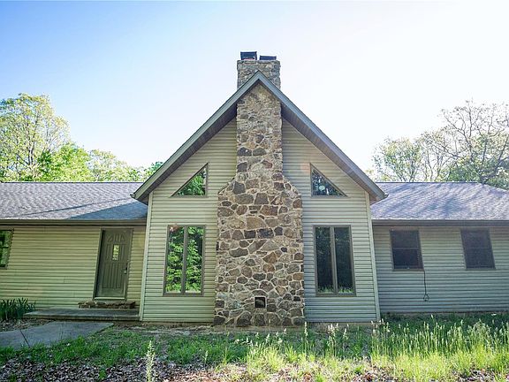 The definition of PRIVACY in Missouri! This amazing A-frame dream home is tucked away in the trees on over 26 Acres! Enjoy 4beds/3 baths, office/den, great room w/ cathedral ceiling, 2 stone fireplaces, large sunroom, 60x30 outbuilding w/ concrete floor and extended-height garage doors. The lean-to on the back side has a generator hook-up and there is also extra parking on the side. The master suite is a separated floor plan on the main level and is set up as a jack-n-jill bath from the laundry room for easy clean-up after a long day of working outside. The basement has a stone fireplace w/ blower and a safe room. It has a 4th bedroom, full bath and walk out to the patio area. Be sure to see this incredible "getaway" home close to the Gasconade River and so much more! **Note aerial in map online is not accurate. Contact your agent for survey. Additional Rooms: Sun Room
