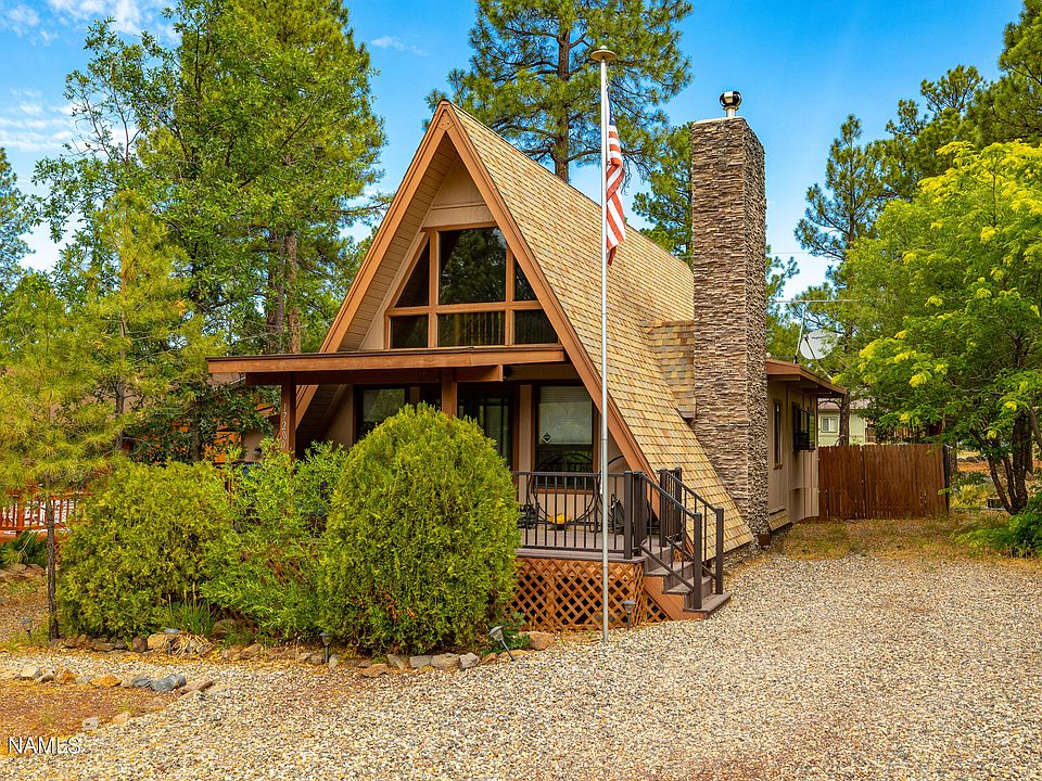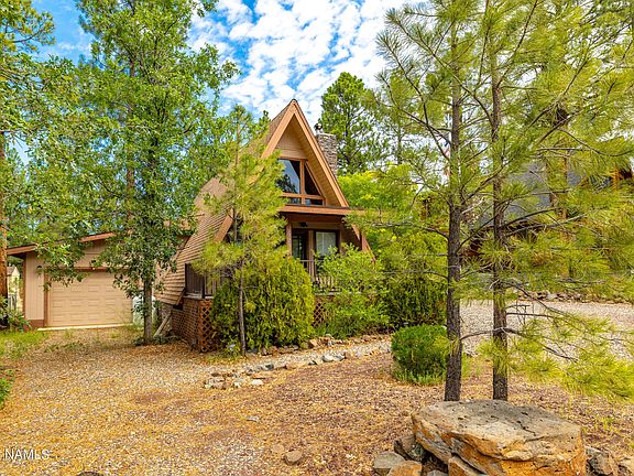 Welcome to your Quiet retreat in the pines. This unusually spacious A-Frame cabin located in Munds Park, AZ. is approximately 1200 square feet of living space and large enough for all to spread out in front of the fire on a winter night or open the doors and entertain on the front and back porches in the summer time! Large primary bedroom on first floor with separate laundry/utility room leading out to the fully fenced back yard for your furry friends. Attached 1 car garage is a bonus to store your toys you enjoy the forest with. The home has 2 solid years of short term rental history and can come fully furnished/Turnkey with the right offer.