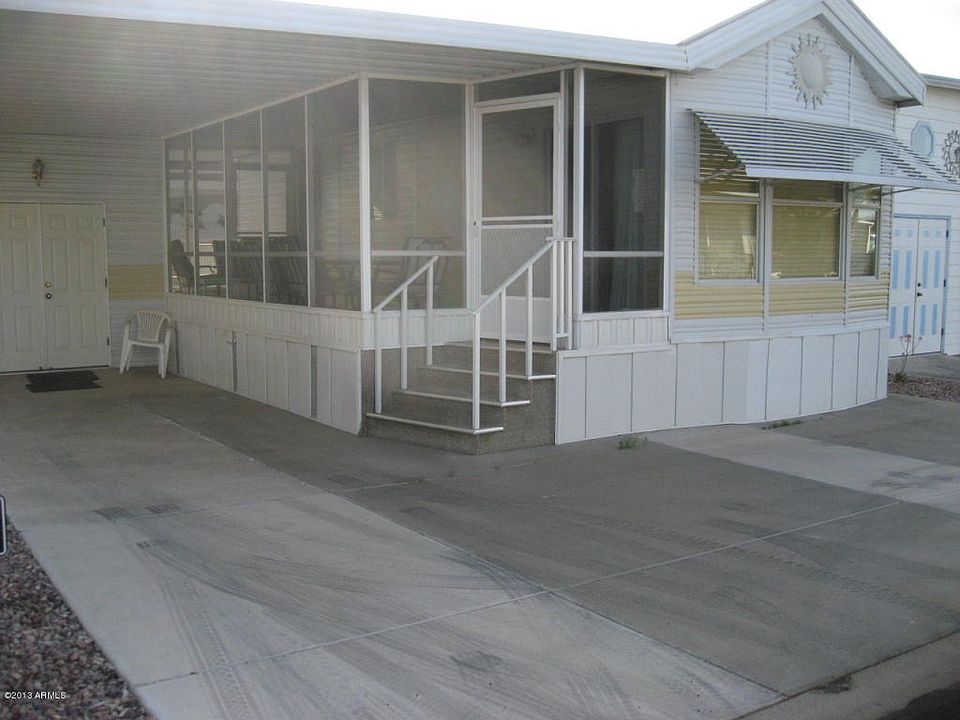 REMODELED PARK MODEL WITH SCREENED IN DECK - This 1999 CAVCO park model has been remodeled to including flooring, countertops, sink, refrigerator, dishwasher and window coverings. Painted inside and out in 2011. The A/C was replaced in 2012. Washer/dryer in shed. The only thing missing here is YOU! This has been hardly used since it was remodeled. This is a great opportunity to own in Happy Trails! It would also make a great investment property! Happy Trails is a guard gated, age restricted 55+ community in the northwest valley within the city of Surprise. Owner would also consider a trade for an RV lot. Now is the time to buy!!