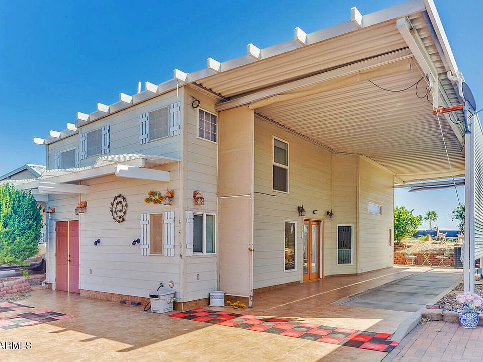 AZ Golf Course Retirement Home or Desert Winter Getaway? Either way, this Class 3 Residential ''Site Built'' Home is beautifully appointed and situated on the 12 fairway of Great Eagle GC. Full kitchen with custom tops and cabinetry. High ceiling living room furnished with leather furniture and Entmt center. 2 baths, both with custom walk-in showers, Upstairs has Master BR, master bath w/ dual vanities. Office/craft room at the top of the stairs offers Mt. views. Stair Lift Elevator Assembly included for future use. Tons of storage inside home plus Shed w/ more closets. Private outdoor living space faces Eastward. Fully covered RV Parking space with sewer/water & 50A service. Happy Trails is an active, 55+ gated resort with many amenities ~ Pickleball, Pools,