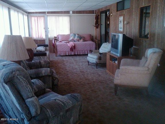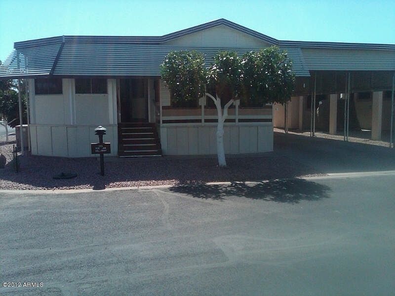 This great Park Model with Az Room features a fully furnished unit with a queen bed in master bedroom, great living room furniture with a day bed to accomadate your guests. This is an end unit so it is larger than most. It also has covered parking for 2 cars and a covered patio on the back to entertain your guests in the winter. Property also has fruit trees for your picking. It also features a shed with a washer and dryer included.