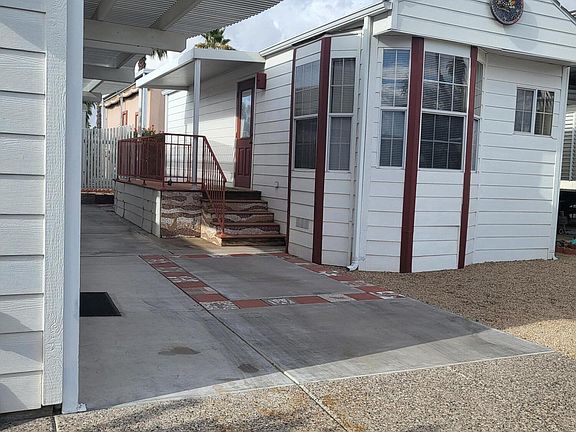 Welcome to Happy Trails Resort, the resort where you own your lot! This park model, 2 story casita certainly has the ''cute factor''! Around almost every turn, you will find a delightful piece of art created by the owner/mosaicist! The artist/owner has maintained this home while adding to it's appeal. The home has tons of natural light with many windows and two skylights. The outdoor area is complete with covered areas, pergola and covered deck. There is an outdoor counter with sink and stove and the 2 story casita has 1/2 bath, washer/dryer, more counter space and the upstairs height is approx 5'8''. Lots of parking and a lemon tree round out this HTR gem. Come on over and see it today! Happy Trails is a 55+ community with tons of activites, groups and amenities.