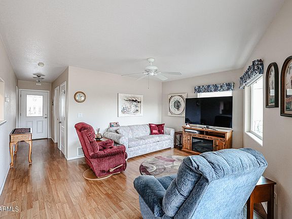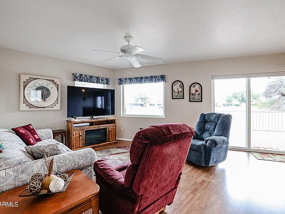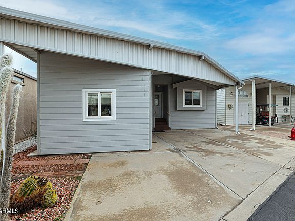Step into luxury living with this stunning 2-bedroom, 2-bathroom at No. 35. Nestled on the golf course in Happy Trails Resort, this meticulously cared for home is a true gem. The modern kitchen and baths make it move-in ready, while the indoor laundry, walk-in closet, and main ensuite with a step-in shower add convenience. Spacious living areas provide comfort, and the huge eastern-facing porch is the perfect spot to enjoy golf views and breathtaking Arizona sunrises. With most essentials included, seize the opportunity to embrace resort living and indulge in the myriad activities and amenities awaiting you. Welcome home to No. 35! #OwnYourLot #GolfCourseLot #LuxuryLiving #2bd2ba #10thFairway #1000SqFt #CoveredDeck #BuiltinVacuumCleanerSystem #No.35