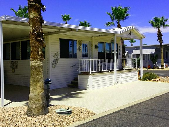 WELL BUILT PARK MODEL/ARIZONA ROOM. 2 BED, 2 BATH ON A CORNER LOT. ARIZONA ROOM IS A GREAT FAMILY ROOM OR SECOND BEDROOM. LOTS OF TILE IN ALL THE RIGHT PLACES. VERY NICE LAUNDRY ROOM/OFFICE/DEN. STORAGE SHED FOR GOLF CAR OR STORAGE. PARKING FOR 2+ CARS AND A SPOT JUST FOR YOUR GOLF CART. SCREENED IN PATIO FOR YOUR MORNING COFFEE OR ENTERTAINING. This home is move-in ready. Great location. Lots of fun and Clubs to join in the Happy Trails community. A guard gated age restricted 55+ community in the northwest valley within the city of Surprise. With plenty of activities for your enjoyment such as golf, pickle ball, quilting,wood shop ,swimming.
