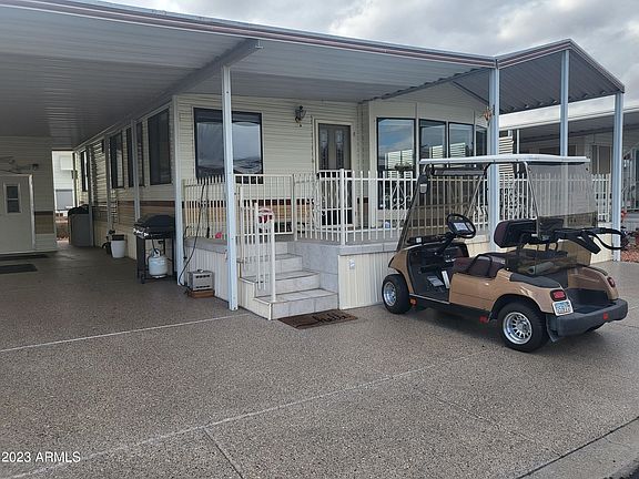 Welcome to Happy Trails Resort! Featured here is a lovely 2 bd 1.75 bath park model/AZ room. This home has a fabulous east facing deck, covered parking, spacious shed (w/stack washer/dryer), 2 large bedrooms, 1.75 baths. It comes furnished with all the necesseties (turn key) and you own the lot! Happy trails RV resort is a 55+ community that offers fun & games for residents. SOME of the amenities include: 4 swimming pools, hot tubs, fitness center, pickleball, tennis and billiards. Ask about our clubs: sewing, quilting, woodworking, lapidary, ceramics & more! The resort offers onsite a: restaurant, post office and RV/car wash. Play BINGO see a show or concert at our performing arts center, sing karaoke or take your RC car to our new track, play cards, mahjong or take a yoga class.