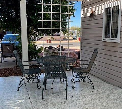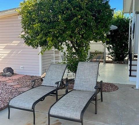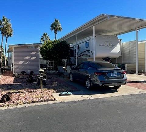 HIGHLY MOTIVATED SELLER!!! This is a very lovely lot with full awning which will accomodate your motor home or 5th wheel and private backyard which is surrounded by aluminum lattice. Lot also contains a shed with shelves for storage. Two beautiful fruit trees that provide both fruit and privacy. Two patio tables are included but the chaise lounge chairs and the glider do not convey. Not only will you have a wonderful lot to bring your RV to, you will have the great amenities that Happy Trails offers. With pad fees going up each year now the time to own your own lot!