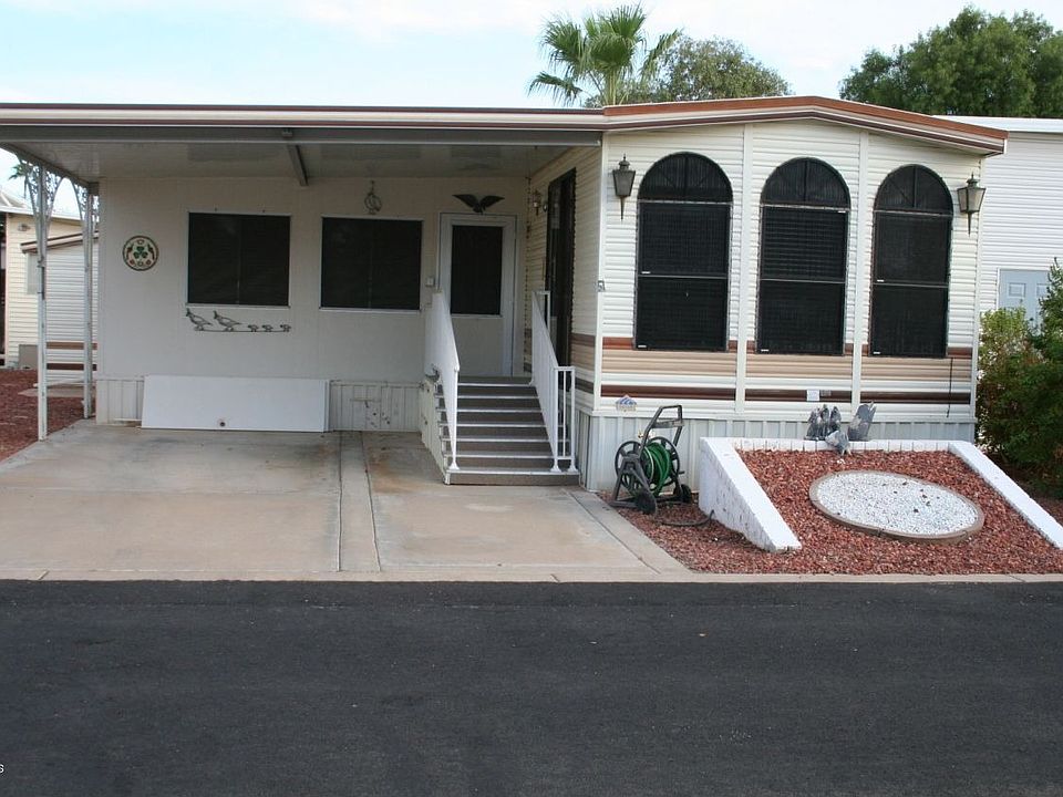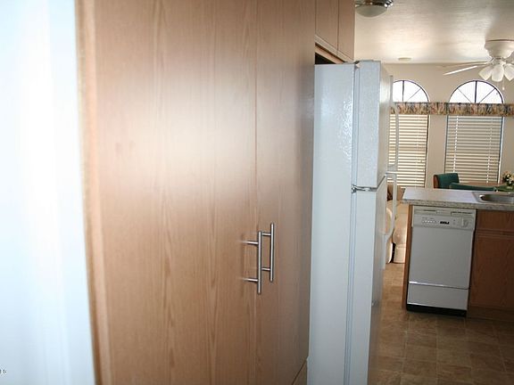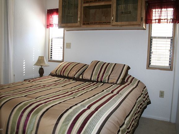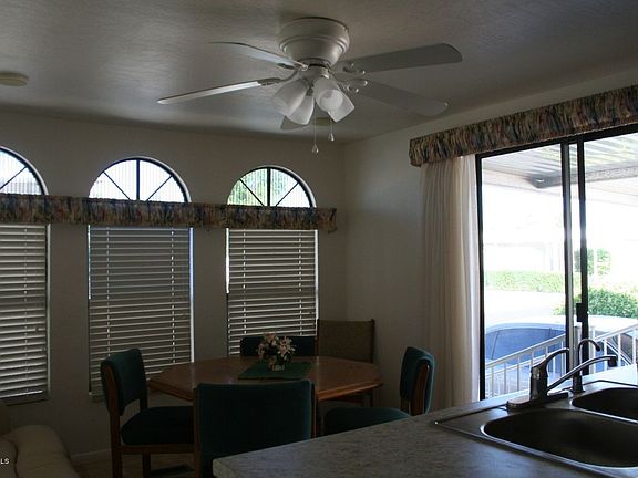 What a great park model with a large 19 x 16 Arizona Room. Enter through the dining room into a fully updated kitchen with new cabinets, new flooring, new counters and all new water pipes. This home has a large open kitchen with built in microwave, dishwasher and lots of pantry space. The eat in kitchen area has room to entertain and play cards with the neighbors. There is a walk through to the Arizona room that is used as a family room. The bedroom has an entrance to the Arizona Room also. Out back is a cozy screen room next to a shed that would be great for hobbies or crafts. This home has tons of potential and is priced right. Make an offer today!