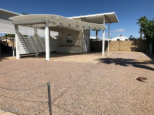 GREAT RV LOT WITH 2 story casita. The lot has aggregate concrete, a partial awning that still allows for sunshine, privacy screening and sunshade. It will fit any size RV. Casita main level is tiled, has inside cabinets, counter,refrigerator,stack washer dryer and a private water closet. The second level has carpet and houses the water heater. Most can stand up in second level. The lot backs to inside street for more privacy. Great lot, great clubs and amenities. You own the land. What are you waiting for? Make this lot and Happy Trails your winter oasis!!!