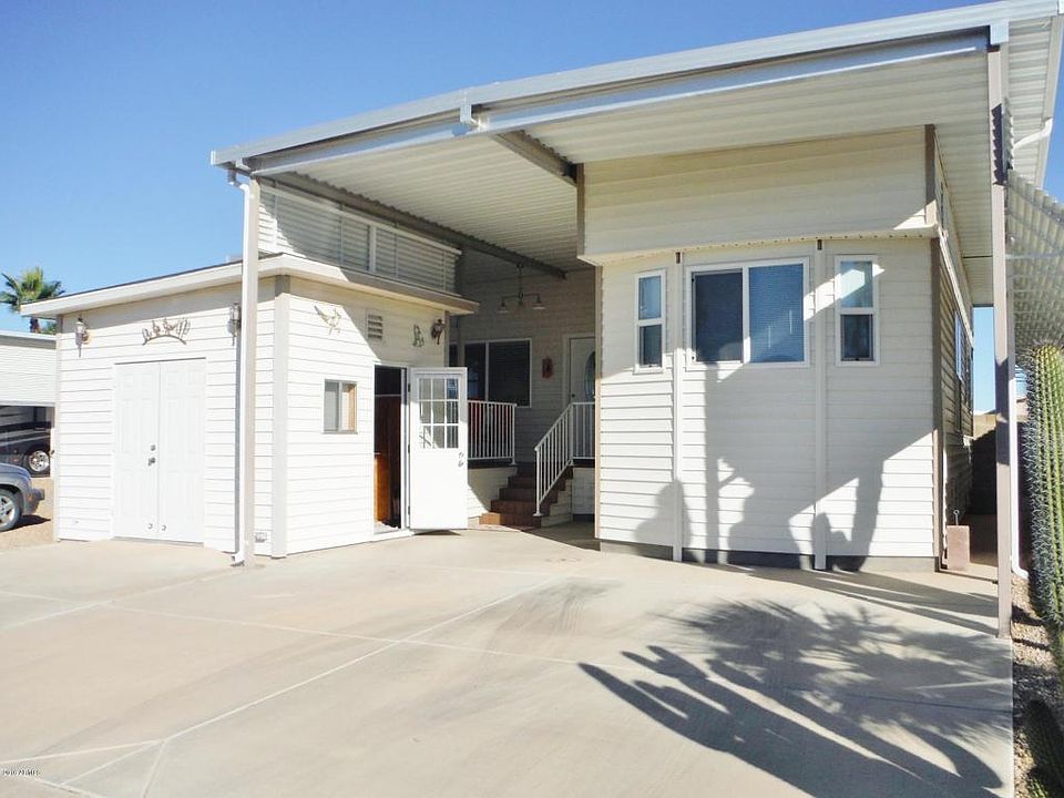 For more information on this property, contact the Listing Agent, Lona King at (623) 203-6271 or lonaking@cox.net. ALMOST LIKE NEW PARK MODEL WITH ARIZONA ROOM. LARGE INVITING FRONT COVERED PATIO FOR ENTERTAINING AND MEETING YOUR NEIGHBORS. SPACIOUS ARIZONA ROOM, WELL DESIGNED MASTER BEDROOM WITH PLENTY OF STORAGE. THERE IS A MASTER BATH PLUS A POWDER ROOM. LARGE OPEN KITCHEN WITH DINING AREA, BUILT IN CHINA CABINET, MUSIC SYSTEM WITH SPEAKERS. KITCHEN OPENS WITH SLIDING DOORS TO THE LARGE PATIO. STORAGE SHED IS LARGE AND HAS A WASHER/DRYER. THE BACK PATIO IS ALSO NICE AND ROOM FOR A GREAT BBQ.