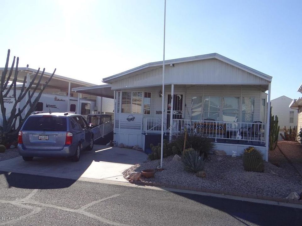 1994 Park Model/Arizona Room, approximately 750 sq. ft.2 bed-1 bath with new carpet and freshly painted. This Park Model has a galley kitchen with built-in microwave and lots of cabinets space, dining area, bathroom and bedroom. Very open floor plan. Arizona Room is the home of the great room. Large Master bedroom with a big closet.A/C AND HEATING IS ABOUT 3 Yrs. old. The shed features the washer & dryer plus cabinets and a ceiling fan. The East facing deck is perfect for that morning coffee and watching those morning sunrises. A great place to entertain.