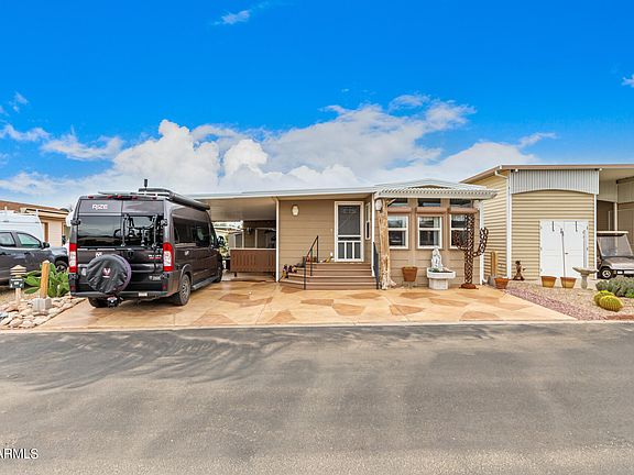 Looking for a new place to call home? This lovely mobile home is the one for you! Located in Happy Trails RV Resort, this 55+ Adult Community has all the amenities you have been waiting for, starting with a workout facility, refreshing pool, tennis court, golf course, and much more. You'll absolutely love what the interior of this home has to offer; a welcoming living room, wood-look floors, and an eat-in kitchen showcasing ample cabinetry, granite counters, and built-in appliances for your cooking needs! The relaxing bedroom has a closet and bathroom, letting you have a good night's sleep. The backyard offers a covered patio, a shed for extra storage and a boxed garden area! Close to Great Eagle Golf Club and more! Truly a must-see beauty. Make it yours today!