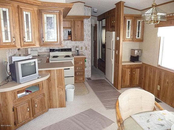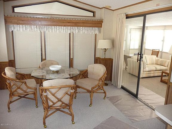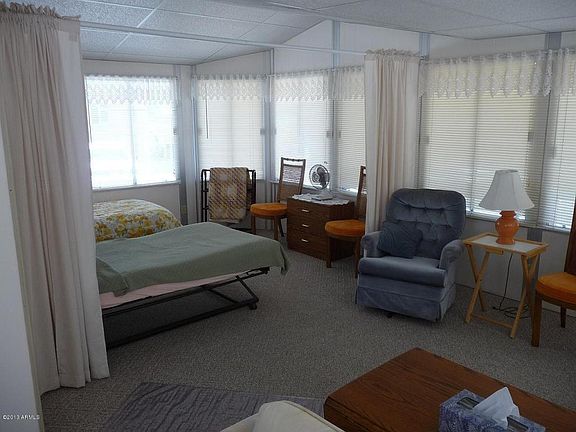 Park model with spacious Arizona room that includes second sleeping area. Large covered deck and separate storage building, very close to neighborhood center with pool, spa and laundry facilities. Situated on large corner island lot with view of golf course. It is furnished and ready for you to move in. This is a 55 and over community with golf, tennis, pickleball, crafts, woodshop, billiards, multiple pools and spas and much more. Owner is licensed real estate agent.